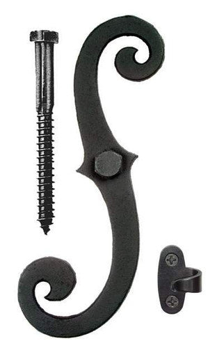 Acorn AK4BQ: 6-3/4" S Curve Shutter Dog for Wood (pair) - Black Smooth Aluminum