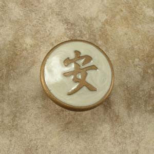 Anne At Home 222726-19: 1-3/4" Tranquility Cabinet Knob - Pearl/Gold . What better way to bring peace and happiness to your home with this symbolic Asian cabinet hardware design by Anne at Home. Inspired by Asian Culture, the Anne at Home Tranquility knob bright pearl and gold colors are sure to brighten any living area. Anne at Home cabinet knobs unique designs and custom pewter finishes are unlike any other cabinet knobs on the market today. All Anne at Home hardware are made from solid pewter in the U.S.A. Custom made orders are not returnable. Click here to view Finishes: