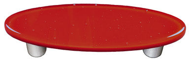Aquila Art Glass HK1003-POA: 3" Oval Cabinet Pull. Solid Collection in Brick Red glass with aluminum post.