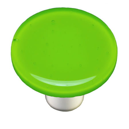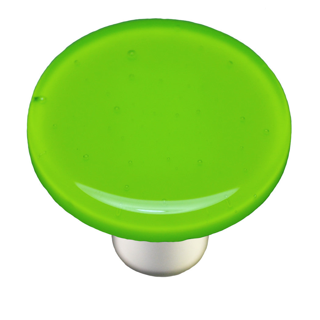 Aquila Art Glass HK1017-KRA: 1-1/2" Round Cabinet Knob. Solid Collection in Spring Green glass with aluminum post.