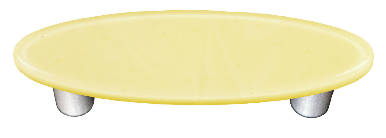 Aquila Art Glass HK1040-POA: 3" Oval Cabinet Pull. Solid Collection in Marzipan glass with aluminum post.
