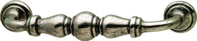 Hafele 125.88.902: 128mm cc Bordeaux D-Handle Cabinet Pull in Pewter finish. Mounting holes measure 128mm center to center.