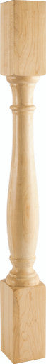 A classically-carved turned post provides full symmetry from any angle. The smooth curves and carved rings ebb and flow between two substantial blocks. This hardwood post can complete a furniture piece as a table leg, island end, or stair rail base.