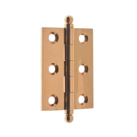 IDH 82015-008: 2 x 1-1/2" Cabinet Hinge w/Ball Finials (pair) - Bright Copper