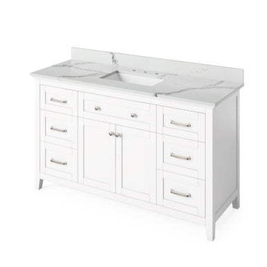 Jeffrey Alexander VKITCHA60SWHCQR: 60" Chatham Single Bowl Vanity - White Cabinet with Calacatta Vienna Quartz Top.
