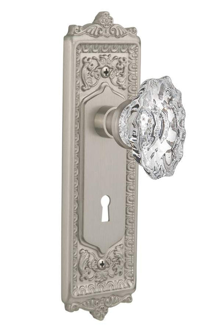 Nostalgic 713977: Egg & Dart Backplate w/Chateau Knob Privacy Door Set - Satin Nickel