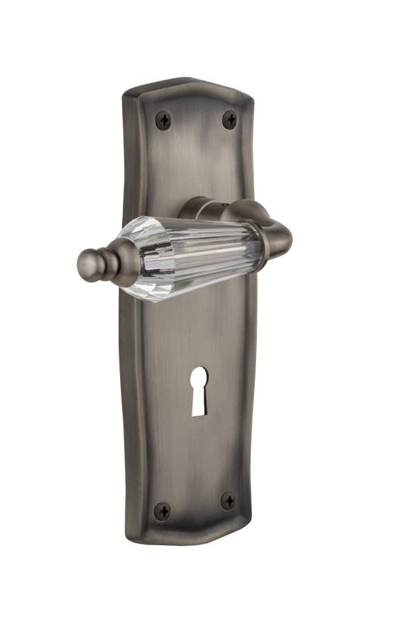 Nostalgic Warehouse 714146: Prairie Collection Backplate with Parlour Lever Passage Door Set in Antique Pewter finish. The quiet, discerning restraint of the Prairie Plate evokes a spirit reminiscent of the Craftsman style. Combine this with Parlour crystal lever to strike a lovely note throughout your entire home. All Nostalgic Warehouse levers are mounted on a solid (not plated) forged brass base for durability and beauty.