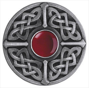Notting Hill Decorative Hardware NHK-158-AP-RC: Celtic Jewel Cabinet Knob in Red Carnelian/Antique Pewter finish.