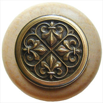 Notting Hill Decorative Hardware NHW-760N-AB: Fleur-De-Lis Wood Cabinet Knob in Natural/Antique Brass finish.