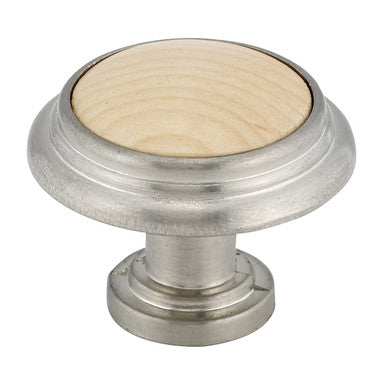 Richelieu Hardware BP420195151: 1-1/4" Cherbourg Cabinet Knob in Brushed Nickel finish and Maple . With simple yet refined styling, this metal and wood knob will add elegance to any classic design. Cherbourg collection. Country style.