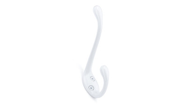 Richelieu Hardware BP651330: 4-3/4" Utility Double Coat Hook in White finish. This simple coat hook will blend seamlessly into any decor. An excellent choice for any space. Load capacity: 22 lbs. Hooks collection. Utility style.