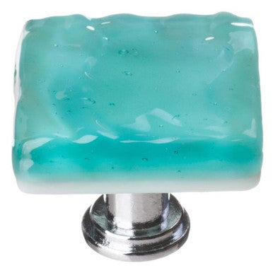 Sietto Hardware K-207-PC: 1-1/4" Glacier Cabinet Knob - Aqua glass with Polished Chrome base.