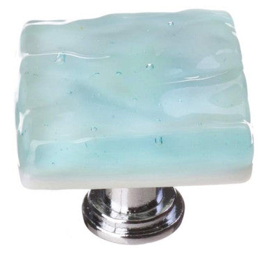 Sietto Hardware K-208-PC: 1-1/4" Glacier Cabinet Knob - Light Aqua glass with Polished Chrome base.