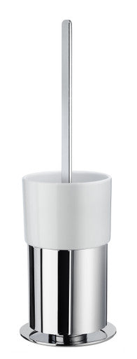 Smedbo Hardware FK311P: Outline Freestanding Toilet Brush with Holder in White Porcelain and Polished Chrome finish. Outline collection. Freestanding.