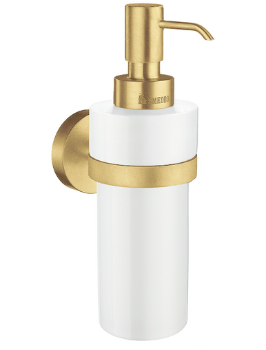 Smedbo HV369P: Home Wall-Mount Soap Dispenser w/Porcelain Top - Brushed Brass