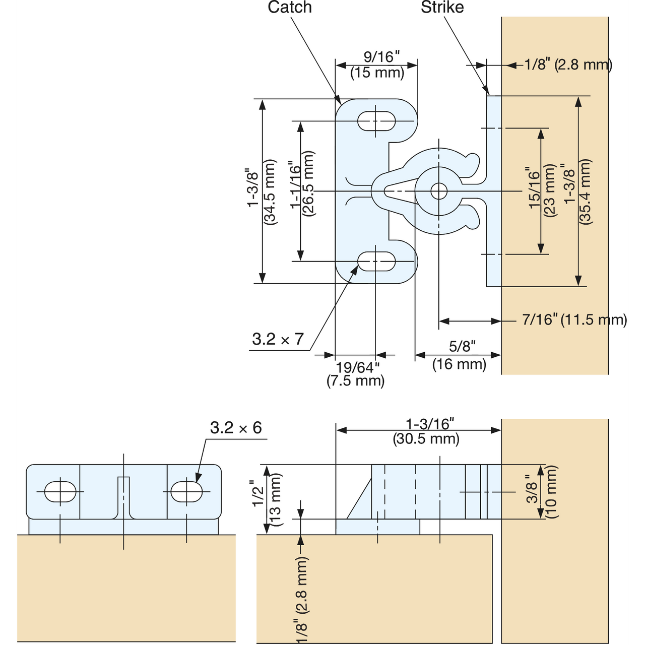 Sugatsune K-CATCH/WHT-T: 35mm Knuckle Catch - White