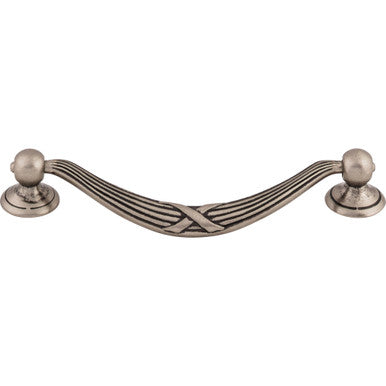 Top Knobs M932: Ribbon & Reed Drop Bail Cabinet Pull in Pewter Antique finish.